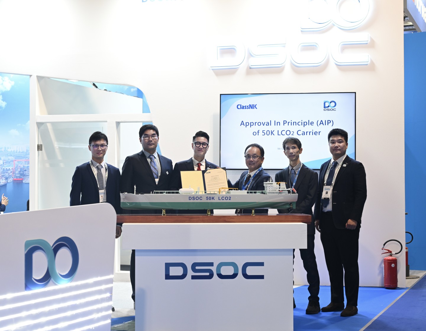 9月9日至12日第35届国际天然气展会(GasTech)在意大利米兰举行,大船海工开发的新型5万立方米和2万立方米液体二氧化碳运输船方案分别获得NK船级社和DNV船级社AIP原则性认可。在大船海工展台现场,NK船级社全球总裁兼首席执行官菅勇人先生和DNV船级社二氧化碳航运业务发展总监Erik Mathias Sørhaug先生向大船海工颁发相关船型的AIP原则性认可证书。